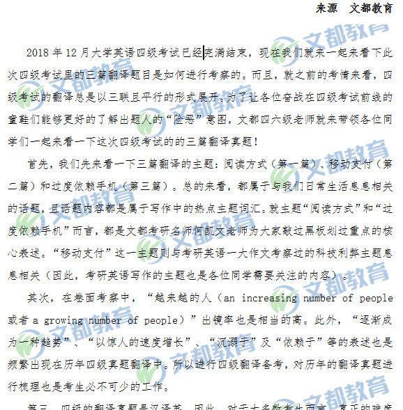文都首页>资料中心 > 四六级 > 四级>2018年12月四级英语翻译真题之归纳总结