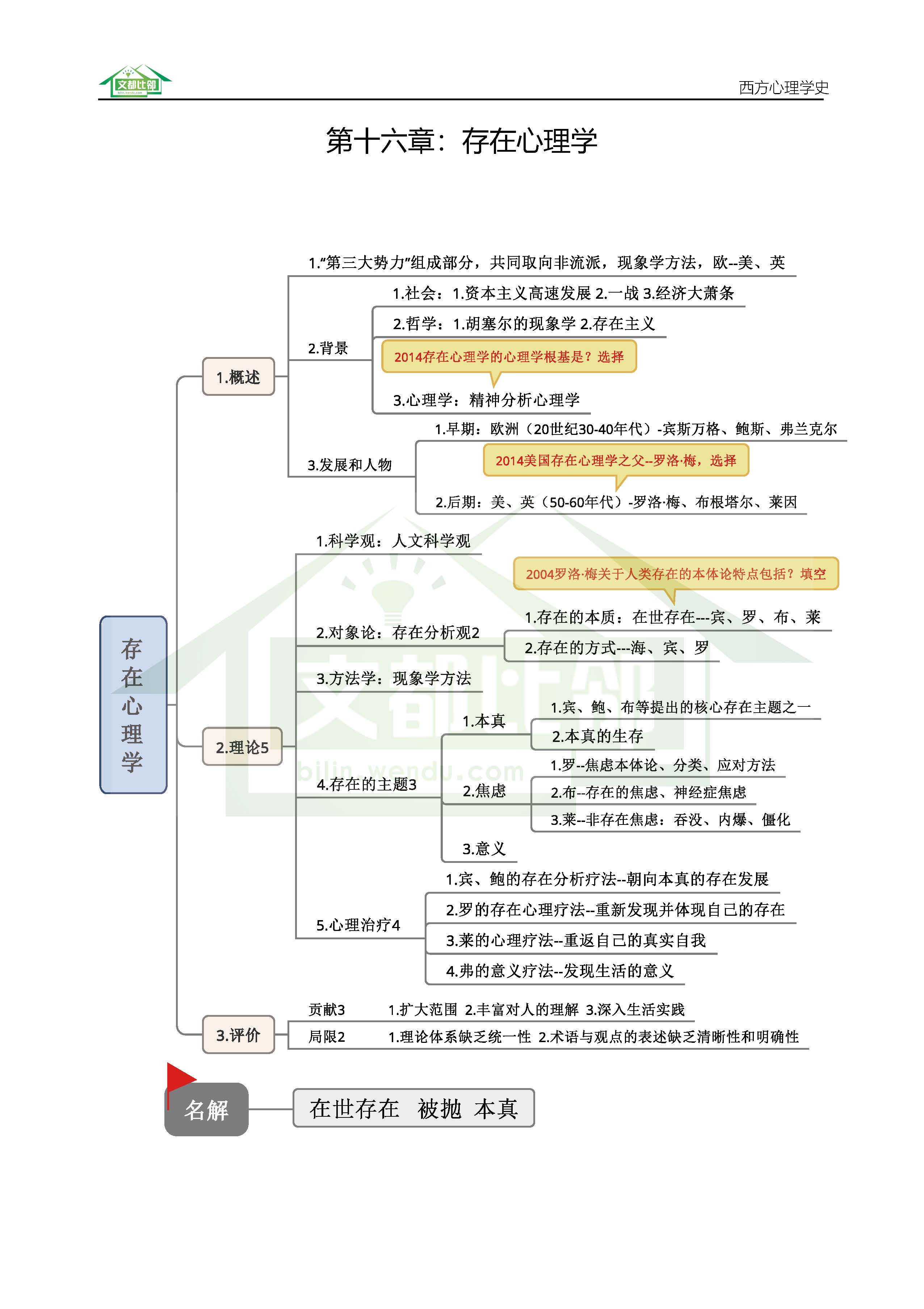 文都首页>资料中心 > 心理学>2019西方心理学考研知识逻辑图:第十六章存在心理学