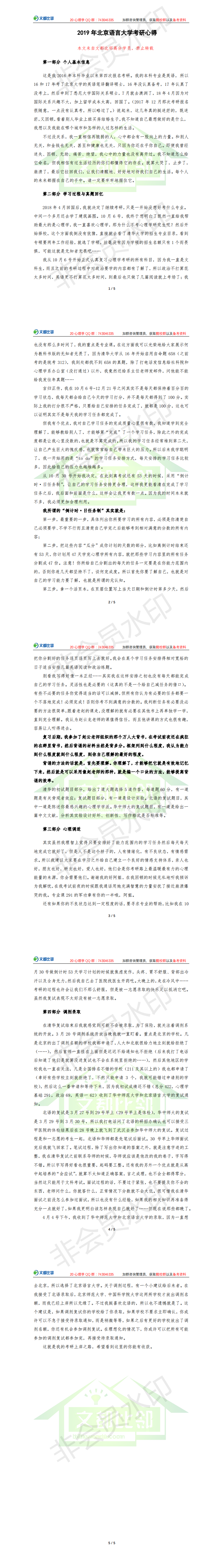 北京语言大学心理学考研经验分享