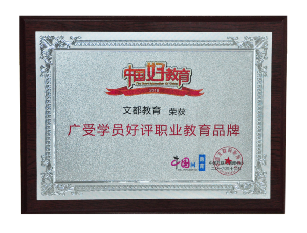 2016年12月12日,由中国互联网新闻中心(中国网)主办的“2016中国教育家年会暨中国好教育盛典”在北京钓鱼台国宾馆隆重举行。在本次中国网“中国好教育”盛典中,世纪文都教育科技集团(简称文都集团,股票简称:文都教育,股票代码:838380)凭借强大的职业教育培训实力和不竭的发展动力,获得“广受学员好评职业教育品牌”称号。