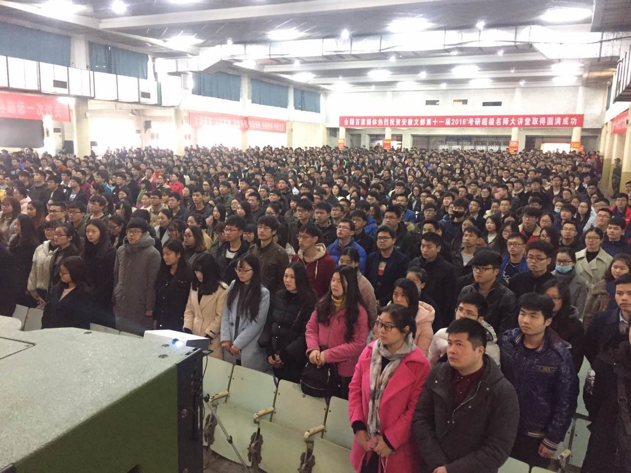 正当2017考研学子进入复试准备的时刻,一场声势浩大的公益讲座又吹响了2018考研的号角!2月26日(周日)上午9:30,“第11届2018考研教师大讲堂”在合肥市安徽农业大学大礼堂隆重举办,本次活动由文都教育集团旗下的安徽文都承办,讲座现场吸引了3000多名安徽各高校考研学子参加,他们来自安徽大学、合肥工业大学、安徽中医药大学、安徽医科大学、安徽建筑大学、安徽农业大学、合肥师范大学、合肥学院、安徽科技学院、安徽外国语学院、巢湖学院、新华学院、文达学院等16所高校。此外,还吸引了很多社会考生积极参与。