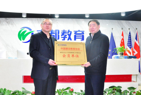 2017年3月8上午,世纪文都教育科技集团(简称“文都集团”)与中国建设教育协会(简称“中建教协”)在文都教育北京学院国际校区举办了合作交流签约及挂牌仪式,文都集团旗下的文都建考正式成为中建教协会员单位,中建教协建筑企业人力资源教育工作委员会副秘书长、中建管理学院院长助理辛凤杰和文都集团副总裁李敬华共同为挂牌揭幕。
