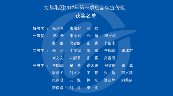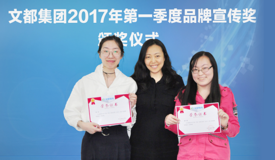 在颁奖仪式上,副总裁张隽谈到,从本次获奖的97件(类)作品来看,体现出了三个明显特征:首先,抓选题、抓原创。本次获得特等奖的作品题材中,文都图书AR黑科技、湖北文都万人公益讲座一直播和2017年春节集五福活动等原创选题,突出了文都特色;其次,抓教师、抓项目重大节点。与文都考研教师何凯文相关联的有多篇获奖,还有四六级查分、考研复试国家线公布等重要节点的题材作品,都有很好的流量表现;再次,作品聚众智,多打磨,抓精品。2017年文都集团新春年会邀请函H5,公司上下反复打磨,修改多达十多遍。今日头条、搜狐、新浪、网易等社会自媒体平台发布的集团新闻,不分周末和节假日,随时随地推送,抢占了最佳舆情节点,整体阅读量有大幅提升。希望新媒体团队在文都集团4月“产品创新月”中梳理思路、明确目标,加强部门与项目之间、总部与各地之间的协同合作,共同为推进文都集团品牌战略做出更大的贡献。