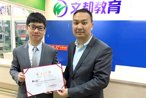 4月22日,国内考研英语教师谭老师正式受聘为文都考研教学研究院专家,文都考研教研院副院长伍贤文向谭老师老师颁发了《专家证书》。