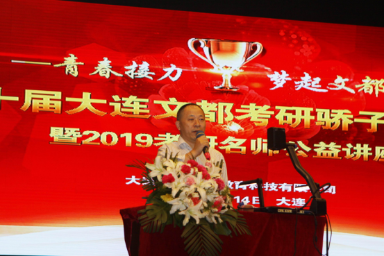 龚海军校长在讲话中指出,大连文都的迅速发展,考研辅导的成绩斐然,既是教育工作者风雨兼程、默默耕耘的结果,更是莘莘学子们奋力拼搏、坚持不懈的成绩。2016年,对于每一个文都人都是不平凡的一年。,2016年8月8日文都集团成功挂牌上市,成为了考研培训行业唯一独立上市的教育机构,这也是文都发展史上最重要的里程碑;第二,2016年文都集团培育出历届考研成功人数最多的一年,高达万人之多。这其中也有大连文都的特别贡献,2016年,大连文都成功考取的700多名,其中99名幸运骄子被评上了文都杯奖学金。