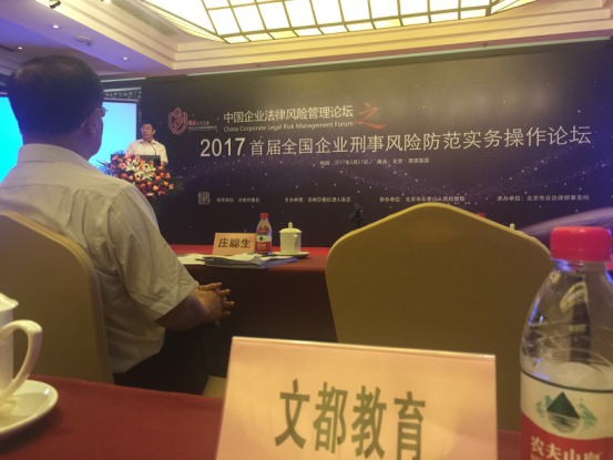 5月21日,中国企业法律风险管理论坛之首届全国企业刑事奉献防范实务操作论坛在北京西苑饭店隆重举办。本次论坛由法制日报社指导、法制日报社法人杂志主办、北京市石景山区人民检察院协办、北京市合达律师事务所承办。世纪文都教育科技集团董事长应邀参加了本次论坛,并发表主题演讲。