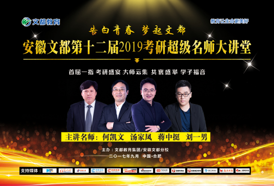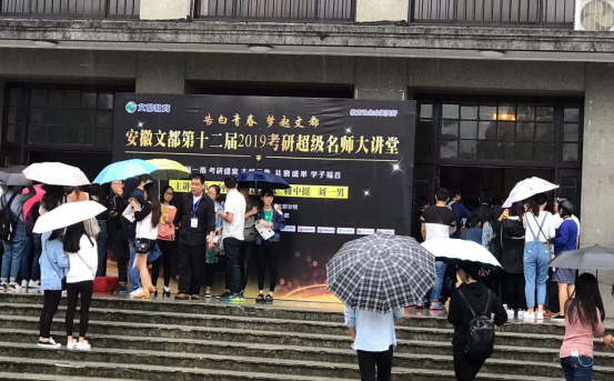 2017年9月24日,安徽文都第十二届2019考研教师大讲堂在安徽农业大学的大礼堂举行,到场的文都教师有何凯文、汤老师、蒋老师、刘一男。早上7点,安徽文都工作人员准备就绪,虽然天公不作美,秋雨袭来,但是丝毫不影响同学们的热情。