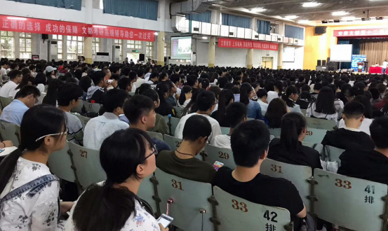 为方便学生入场,安徽文都工作人员分为外场指挥组、内场指挥组、师资接待组、宣传组、音响设备组、安全保卫组、后勤组等9个小组,确保场地内外井然有序。