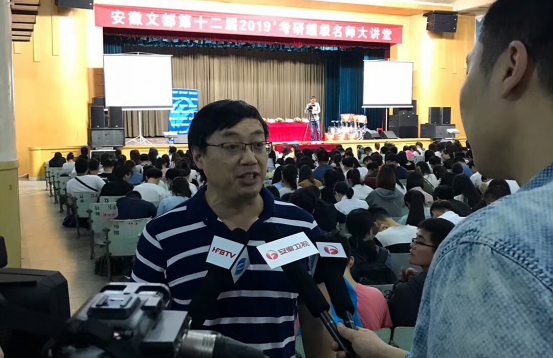 本次活动讲座结束之后,文都教师何凯文、汤老师、蒋老师、刘一男以及安徽文都校长范哲老师接受安徽卫视等多家媒体的采访。