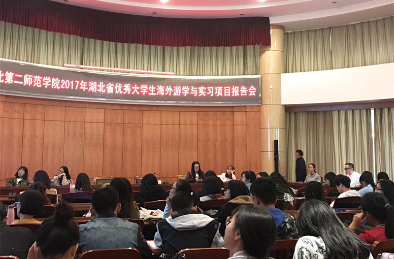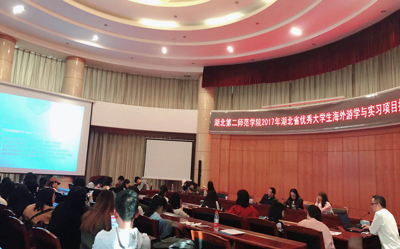 11月2日下午,《湖北优秀大学生海外游学与实习项目报告会》在湖北第二师范学院顺利开展。文都集团湖北文都留学公司总监陈洪峰、陈敏老师为在场的同学解读了最新海外游学政策,分析出国常见问题及游学对出国的意义,受到了学生们的好评。此次报告会旨在让同学们了解到海外游学对拓宽自己的国际视野、形成多元化文化理念的重要意义。