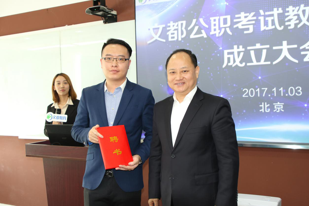 11月3日,为了推动文都公职项目的教学教研工作的开展,教师的科研及业务水平,不断致力于开发专业的教育产品,文都公职考试教学研究院成立大会在文都集团学院路校区举行,文都集团董事长、执行总裁吴朋、副总裁张隽等出席了会议。董事长在现场为文都公职考试教学研究院院长和三位副院长颁发了聘书,并发表重要讲话,为公职考试教学研究院的未来发展指明了方向。