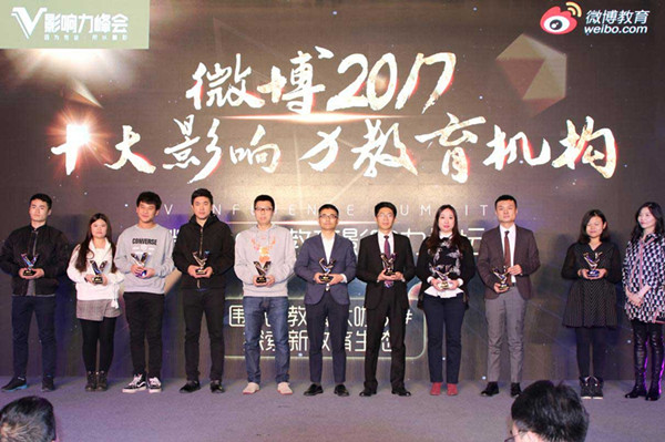 12月6日,微博2017 V影响力峰会在国家会议中心举行,文都教育荣获“微博2017十大影响力教育机构”荣誉称号,文都教师何凯文、谭老师同时荣获“微博2017十大影响力教育大V”荣誉称号,文都教育获得微博粉丝通10万元奖励。文都集团副总裁张隽、文都教师何凯文分别上台领奖,并与全国教育界同行、人气博主等网红齐聚一堂,共同探讨教育生态进化论。