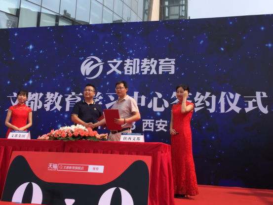 作为本次合作的先行试点,文都教育学习中心于6月18日在陕西西安正式亮相。合作双方签订了文都&阿里“教育新零售”试点合作资源协议、文都教育&西安学习中心“教育新零售”合作协议。文都集团董事长、执行总裁吴朋,文都集团副总裁李敬华、张隽、任吉治,文都集团图书事业部副总经理席飞,文都教育陕西分校校长王选民,阿里巴巴集团淘宝教育负责人筱利、阿里巴巴集团淘宝教育行业运营专家锦哲等共同出席了本次活动,签约仪式由文都考研教师万磊老师主持。