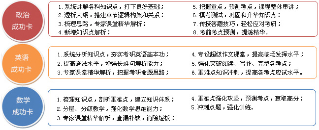 1.政治、英语、数学基础薄弱的考生; 2.政治、英语、数学想要获取高分的考生; 3.艺术类、体育类想要突破政治和英语的考生。